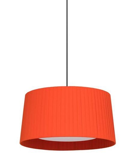 Die Santa & Cole GT5 Hängeleuchte ist zeitlos und elegant. Dadurch eignet sie sich besonders gut zur stimmungsvollen Allgemeinbeleuchtung von großen oder geschäftlichen Räumen. Durch seine relativ niedrige Höhe wirkt der Schirm der GT5 Hängeleuchte sehr zeitgemäß, obwohl der große Schirm eine konische Form besitzt. Das Streifenband aus Baumwolle, das den Schirm umgibt verleiht ihm seinen wohnlichen Akzent. Entscheiden Sie sich bei der Santa & Cole GT5 Hängeleuchte für die naturfarbene Variante, so wirkt die GT5 Hängeleuchte zurückhaltend. Die amber-rote, senffarben, terracotta und die schwarze Version setzen hingegen klare Akzente. Am unteren Rand wird das Leuchtmittel der Santa & Cole GT5 Hängeleuchte elegant durch eine Abdeckplatte aus weißem Kunststoff verdeckt und das Licht wird hierdurch gleichmäßig und blendfrei verteilt. Der Deckenbaldachin der GT 5 Hängeleuchte von Santa & Cole i... ...