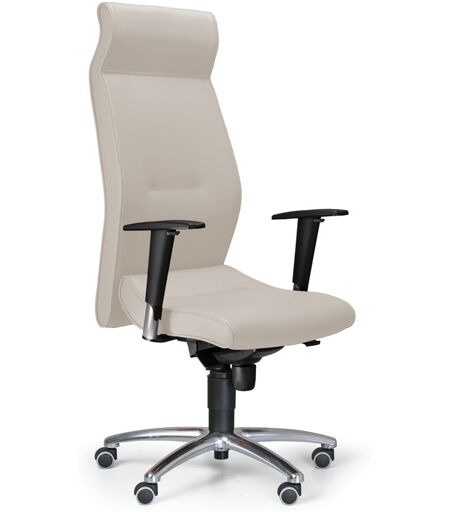 Bürostuhl MEGA mit Bezug aus echtem Leder an beanspruchten Stellen, Seiten und Rückseite aus Ökoleder synchrone Mechanik mit hervorragenden ergonomischen Eigenschaften, die die Neigung der Rückenlehne an die Neigung des Sitzkissens anpasst fortschrittliche 3D Kunststoffarmlehnenmit verstellbarer Höhe, Tiefe und Rotation Sitzfläche mit einer Breite von 50 cm und einer Tiefe von 48 cm, Rückenlehne mit einer Höhe von 77 cm Aluminiumkreuz, Tragfähigkeit 150 kg Rollen für harte Böden (z.B. Schiffböden, Fliesen, Beton, usw.) Eigenschaften: Farbe: weiß, Tragfähigkeit (kg): 150, Rollen: weich für harte Böden, Kreuz: Aluminium, Sitzflächenmaterial: echtes Leder, Rückenlehnenmaterial: echtes Leder, Gesamthöhe (cm): 124 - 131, Sitzflächenhöhe (cm): 44 - 51, Sitzflächentiefe (cm): 48, Sitzflächenbreite (cm): 50, Rückenlehnenhöhe (cm): 77, Lordosenstütze: Nein, Kopfstütze: Nein, Mechaniktyp: Synchronmechanik, Armlehnentyp: Plastik mit Höhenseinstellung, breiten und Tiefe, Bezugsmaterial: echtes Leder, Höhe Armlehne über Sitzfläche (cm): 18 - 25, Sitzfüllmaterial: Kaltschaum in die Form gespritzt, Höhenverstellbare Rückenlehne: Nein, Füllmaterial Rückenlehne: Kaltschaum in die Form gespritzt, Unterste Höhe Armlehne oberirdisch (cm): 61, Breite inkl. der Armlehnen (cm): 67, Arretierung: in 5 Punkten, Balancefunktion: Nein, Armlehnenmaterial: plastik, Höhenverstellbare Armlehnen: Ja, Tiefenverstellbare Armlehnen: Ja, Armlehnendrehung: Ja, Klappbare Armlehnen: Nein, Kreuzdurchmesser (cm): 70, Armlehnen zur Sitzverlängerung: Nein, Min. Sitzhöhe (cm): 44, Max. Sitzhöhe (cm): 51, Abnehmbar der Armlehnen: Ja, Armlehnen: Ja ...