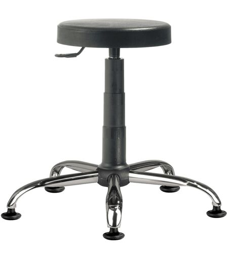 Polyurethan-Taburett mit einem Durchmesser von 32 cm Gaskolben Eigenschaften: Farbe: schwarz, Tragfähigkeit (kg): 120, Balancefunktion: Nein, Sitzflächenmaterial: PUR, Armlehnen: Nein, Rollen: Gleiter, Kreuz: Stahl, Stützring: Nein, Min. Sitzhöhe (cm): 41, Max. Sitzhöhe (cm): 54, Sitzflächenhöhe (cm): 41 - 54, Sitzflächentiefe (cm): 32, Sitzflächenbreite (cm): 32 ...