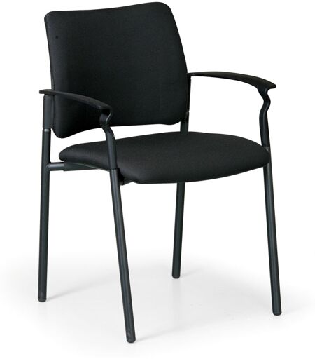 moderner Verhandlungsstuhl mit Polsterung auf der Sitzfläche sowie an der Rückenlehne mit hochwertigem Bezugstoff gepolsterte Sitzfläche und Rückenlehne lackiertes Metallfußgestell Stapeln bis 5 Stück übereinander möglich Stuhltragfähigkeit 120 kg 1 Stück in einer Packung Eigenschaften: Farbe/Dekor: schwarz, Gewicht (kg): 6,2, Konstruktionsfarbe: schwarz, Tragfähigkeit (kg): 120, Sitzflächenmaterial: Stoff, Rückenlehnenmaterial: Stoff, Gesamthöhe (cm): 80, Sitzflächenhöhe (cm): 46, Sitzflächentiefe (cm): 48, Sitzflächenbreite (cm): 47, Armlehnen: Ja, Klappbare Konstruktion: Nein, Packung: 1 Stk., Stapelbar: Ja, Bezugsstoffbeständigkeit (Zyklen): 80000, Höhe Armlehne über Sitzfläche (cm): 19, Material der Konstruktion: Metall ...