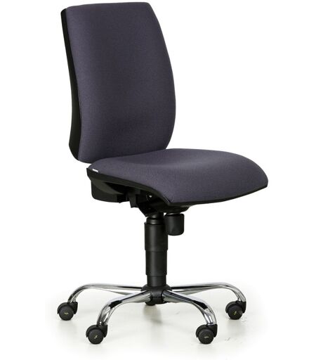 hochwetiger stabiler Arbeitsstuhl für Büros Stuhlkonstruktion ist so angefertigt, um die statische Elektrizität im Arbeitsplatz mit Anwesenheit Synchronmechanik, 5-stufige Arretierung gemessener Widerstand: 0,1 MΩ Bezug in dunkelgrau (anthrazit) verchromtes Stahkreuz harte Rollen für weichen Boden Tragfähigkeit 130 kg Eigenschaften: Farbe: grau, Tragfähigkeit (kg): 130, Mechaniktyp: Synchronmechanik, Balancefunktion: Nein, Bezugsmaterial: Stoff, Sitzflächenmaterial: Stoff, Rückenlehnenmaterial: Stoff, Armlehnen: Nein, Rollen: für weiche Böden, Kreuz: Stahl, Stützring: Nein, Min. Sitzhöhe (cm): 48, Max. Sitzhöhe (cm): 57, Sitzflächenhöhe (cm): 48 - 57, Gesamthöhe (cm): 100 - 126, Sitzflächentiefe (cm): 47, Sitzflächenbreite (cm): 52, Material: antistatisch ...