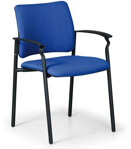 moderner Verhandlungsstuhl mit Polsterung auf der Sitzfläche sowie an der Rückenlehne mit hochwertigem Bezugstoff gepolsterte Sitzfläche und Rückenlehne lackiertes Metallfußgestell Stapeln bis 5 Stück übereinander möglich Stuhltragfähigkeit 120 kg 1 Stück in einer Packung Eigenschaften: Farbe/Dekor: blau, Gewicht (kg): 6,2, Konstruktionsfarbe: schwarz, Tragfähigkeit (kg): 120, Sitzflächenmaterial: Stoff, Rückenlehnenmaterial: Stoff, Gesamthöhe (cm): 80, Sitzflächenhöhe (cm): 46, Sitzflächentiefe (cm): 48, Sitzflächenbreite (cm): 47, Armlehnen: Ja, Klappbare Konstruktion: Nein, Packung: 1 Stk., Stapelbar: Ja, Bezugsstoffbeständigkeit (Zyklen): 80000, Höhe Armlehne über Sitzfläche (cm): 19, Material der Konstruktion: Metall ...