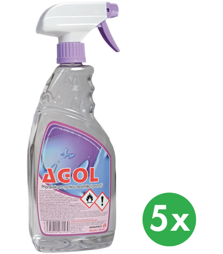 Agol-Schnelldesinfektion für Oberflächen Wird unverdünnt verwendet! Anwendung mittels Zerstäuber, nach 15 s mit einem sauberen Lappen auf der Oberfläche verteilen. Die Produktrückstände trocknen schnell. Nach Erreichen der optimalen Wirksamkeit kann das Produkt erneut auf die Oberfläche verteilt und trocknen gelassen werden. Agol wird überall dort verwendet, wo eine schnelle Desinfektion von Oberflächen erforderlich ist und es zum Kontakt von vielen Personen mit den Flächen kommt. Ermöglicht eine Behandlung von Gegenständen ohne Abspülen für den Kontakt mit Lebensmitteln! Wirkungsspektrum: Fungizid und bakterizid, mykobakterizid, voll viruzid, tuberkulozid Wirkungsdauer baktericidní 5 Minuten fungizid und viruzid gegen Bakteriophagen 15 Minuten Ideal in Kombination mit verdünnten Desur-Produkten, ggf. mit Virenkiller – Desinfektion Guttar. Bei Anwendung der bioziden Mittel sind Sicherheitsvorschriften zu beachten. Vor Anwendung sind die Verpackungsdaten und die angefügte Produktinformation sorgfältig durchzulesen. Eigenschaften: Volumen (l): 0,75, Konzentrat: -, Bakterizid: Ja - 5 min, Fungizid: Ja - 15 min, Viruzid: Ja - 15 min, Packung (Stk.): 5 ...