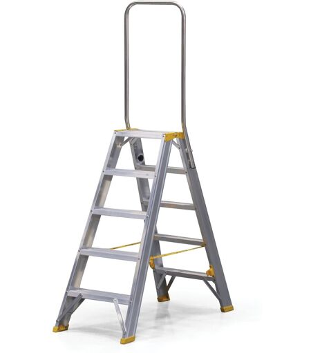 B2B Partner Podestleiter beidseitig aus Aluminium ALVE FORTE mit Handgriff, 2x5 Stufen, Höhe 1,07 m