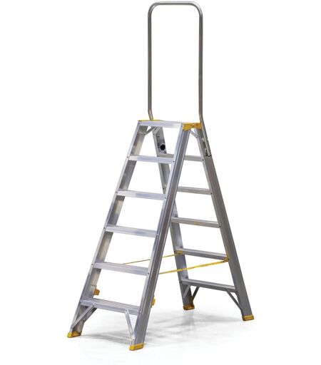 B2B Partner Podestleiter beidseitig aus Aluminium ALVE FORTE mit Handgriff, 2x6 Stufen, Höhe 1,28 m