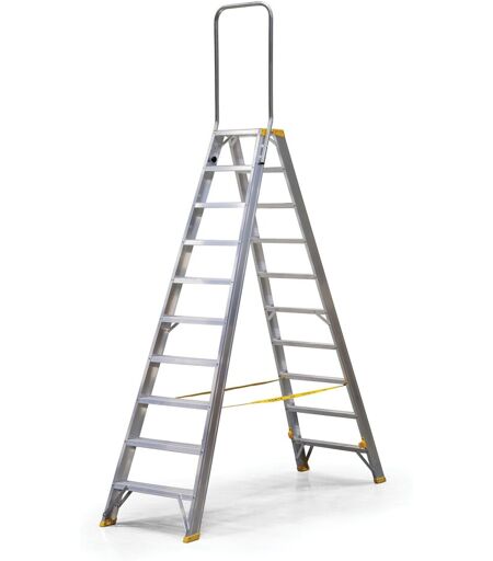 B2B Partner Podestleiter beidseitig aus Aluminium ALVE FORTE mit Handgriff, 2x10 Stufen, Höhe 2,12 m