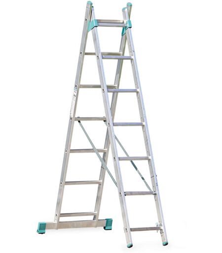 Alu-Mehrzweckleiter mit Anpassung für Treppen ALVE EUROSTYL, zweiteilig, 2x 7 Sprosen,