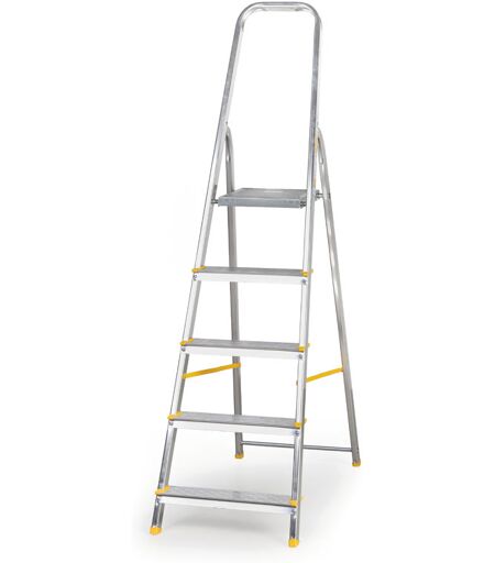 Für die Zielgruppe der Normalverbraucher wie Gärtner, Hausbesitzer oder für den allgemeinen Einsatz in Unternehmen wurden eine Reihe von EUROSTYL-Leitern und -Treppen aus leichten Materialien mit Schwerpunkt auf Leichtigkeit und einfache Handhabung entwickelt. Die Bewegungssicherheit wird durch Anti-Rutsch-Rillen erhöht Für Stabilität sorgen hochwertige Anti-Rutsch-Füße, die auch Beschädigungen der Oberfläche verhindern Plattformabmessungen 264 x 262 mm Tschechisches Produkt Die Trittleitern der Serie EUROSTYL wurden durch das Prüflabor des TÜV Süd strengen Tests gemäß der europäischen Norm EN 131 für eine zulässige Belastung von 150 kg unterzogen. Eigenschaften: Anzahl Stufen: 5, Höhe inkl. Griff (mm): 1590, Höhe der oberen Stufe (mm): 980, Tiefe (mm): 930, Gewicht (kg): 4,4, Tragfähigkeit (kg): 150, Stufenmaterial: Aluminium, Nutzungstyp: Hobby ...