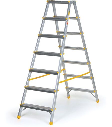 B2B Partner Podestleiter beidseitig aus Aluminium ALVE EUROSTYL, 2x7 Stufen, Höhe 1,46 m