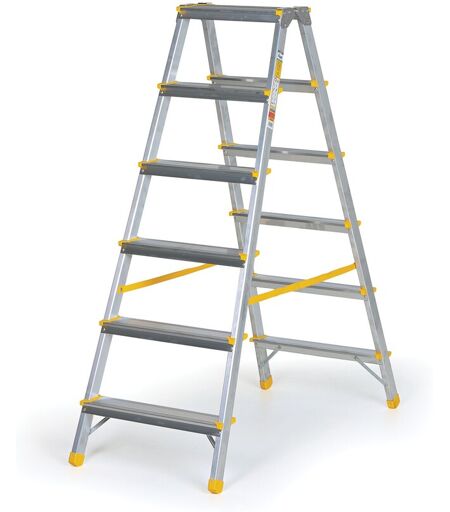 B2B Partner Podestleiter beidseitig aus Aluminium ALVE EUROSTYL, 2x6 Stufen, Höhe 1,26 m