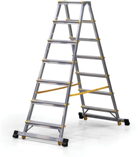 B2B Partner ALVE EUROSTYL doppelseitige Aluminiumtreppe mit Stabilisator, 2 x 7 Stufen, Höhe 1,46 m