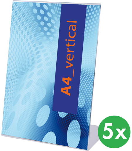 Plexiständer aus transparentem Acryl mit einer Stärke von 1,5 - 2,5 mm A4-, A5- und A6-Format, Hoch- und Querformat im Paket verkauft Eigenschaften: Kapazität: 1x A4, Ausführung: im Hochformat, Material: Acryl, Packung (Stk.): 5, Position: Tisch, Format: A4 + A5 + DL, Ständerform: L ...