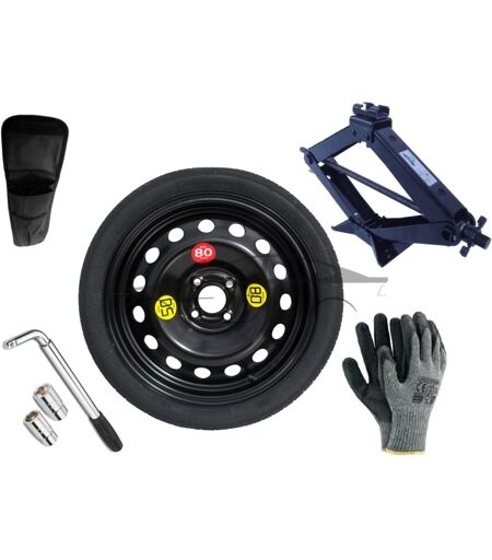 Extradeon Set - Notrad OPEL KARL A R16 4x100x56,6 + SCHLÜSSEL + WAGENHEBER + HÜLLE FÜR DEN WAGENHEBER