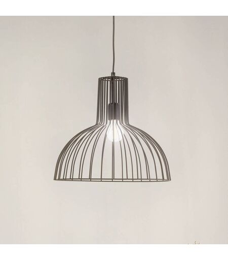 Die Hängeleuchte Fellini MR-672 ist mit einem Lampenschirmen aus schwarzen Metallstreben ausgestattet, der als Halbkugel gestaltet ist. ...