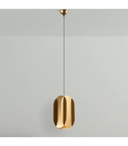 Die Hängeleuchte Corner vereint modernes Design mit hochwertiger Verarbeitung und wird zum Blickfang in jedem Raum. Ihr länglicher Schirm wurde aus vier ovalen Metallplatten zusammengesetzt. Die goldene Innenseite sorgt für noch mehr Behaglichkeit des abstrahlenden Lichts. Dank der modernen und doch zeitlosen Ästhetik passt die Hängeleuchte Corner in viele Einrichtungsstile in Esszimmer, Wohnzimmer oder Küche, wo sie einzeln oder zu mehreren Leuchten angebracht Tische und Theken erhellt. Die Leuchte ist in Europa gefertigt und steht für Qualität und Langlebigkeit. Mit einer E27-Fassung bietet die Leuchte zudem vielseitige Möglichkeiten bei der Wahl des Leuchtmittels, um den individuellen Lichtbedarf optimal zu erfüllen und kann mit einem dimmbaren Leuchtmittel per externem Dimmer auch gedimmt werden. ...