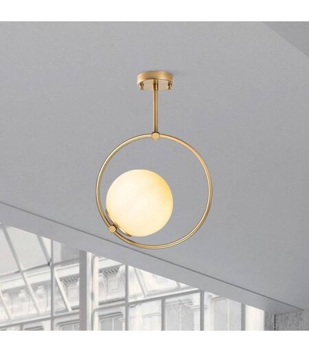 Die Deckenleuchte Dolunay vereint ein modernes Design mit hochwertigen Materialien wie Metall und Glas, um eine stilvolle Beleuchtungslösung zu bieten. Mit ihrem goldfarbenen Finish und opalweißem Lampenschirm aus Glas setzt sie in jedem Raum einen eleganten Akzent. Die Leuchte ist ideal für verschiedene Wohnbereiche wie Wohnzimmer, Esszimmer, Flurbereich und Küche geeignet und fügt sich nahtlos in unterschiedliche Einrichtungsstile ein. ...