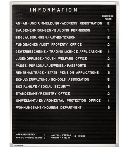 Erleben Sie folgende Features:Zum Anzeigen von Nachrichten, Menüs, Ankündigungen oder Wegbeschreibungen Blickfang mit Retro-Charme für Ihr Zuhause, Büro oder Café Buchstaben leicht anzubringen und auszutauschen Buchstaben werden sicher an der Tafel befestigt Einfache Wandmontage: flexible Montage durch verdecktes Langlochsystem Schwarze Tafeloberfläche mit Gummiriffelung Aluminiumrahmen mit hellgrauen Kunststoffecken Lieferung inklusive Montageset und Montageanleitung ...
