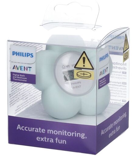 Avent Baby-Badewanne und Zimmerthermometer Das digitale Bad- und Raumthermometer von Philips AVENT hat zwei Funktionen, die sowohl die Bad- als auch die Raumtemperatur überwachen. Andererseits wurde es auch als lustiges und sicheres Badespielzeug konzipiert und getestet. Entspricht den Sicherheits- und Spielzeugnormen Produkte, die der Spielzeugsicherheitsnorm entsprechen, wurden strengen Tests unterzogen, um die Einhaltung und Sicherheit zu gewährleisten. Sicherheit und Spaß Entwickelt für Babys aller Altersgruppen als sicheres und lustiges Spielzeug in der Badewanne. Genaue Anzeige der Raum- und Badtemperatur Mit dem digitalen Bad- und Raumthermometer können Sie die Temperatur des Badezimmers oder des Zimmers Ihres Babys leicht erkennen. Ihr Baby wird sich in einem Bad mit Wasser zwischen 36,5 und 38°C wohler fühlen. Eine Temperatur von 39°C oder höher ist zu heiß und kann sogar Ihrem Baby Verbrennungen zufügen! Babys fühlen sich wohler, wenn sie in einem Raum schlafen, in dem die Temperatur um 18°C liegt. Entwickelt für Babys aller Altersgruppen als sicheres und lustiges Spielzeug in der Badewanne. GAP-frei Verpackung: 1 x Thermometer ...