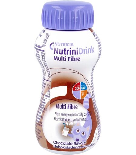 Anwendungsgebiet von Nutrini Drink Multi Fibre SchokoladengeschmackNutrini Drink Multi Fibre Schokoladengeschmack ist eine hochkalorische, vollbilanzierte und ballaststoffhaltige Trinknahrung speziell für Kinder ab 1 Jahr. Hochkalorisch (1,5 kcal/ml = 306 kcal pro Flasche). Mit Ballaststoffmischung mf6. Zur ausschließlichen Ernährung geeignet.