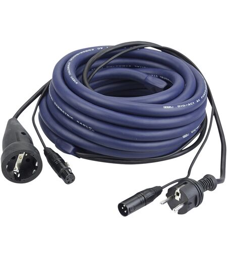 Blaues Strom/DMX-Kabel mit 3P-XLR-Stecker und -Buchse, Schuko-Stecker und -Buchse. 20mtrTechnische Daten: Kabellänge: 20 m ...