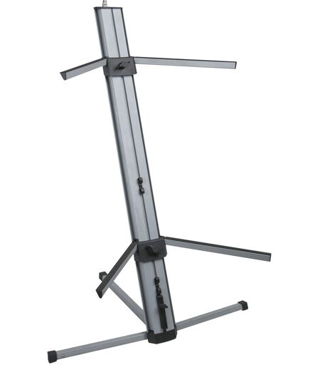 Kompakte Transportmaße, 2 höhenverstellbare Keyboardhalterungen, Mikrofon-Gewindeadapter über den Halterungen, Dieser Keyboard-Ständer ist kompakt und daher einfach zu transportieren und aufzubauen. Im Vergleich zu herkömmlichen Ständern sieht er zudem sehr elegant aus. Die beiden verstellbaren Halterungen sind für 2 Keyboards geeignet. Sowohl die Füße als auch die Tri-Bar-Halterungen können an den Ständer geklappt werden. Am oberen Ende des Ständers befindet sich ein Mikrofonadapter für die Montage eines Schwanenhalshalters.Technische Daten: Breite (mm): 790 mm, maximale Last: 30 kg, Material: Aluminium / Plastic ...