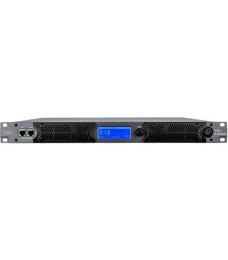 Kompakter (1U) und leichter Class D Touring-Verstärker, Lo-Z (2, 4, 8 Ohm), Hi-Z (70/100 V), Stereo- und Brückenmodus, DSP mit 512 FIR-Filterabgriffen und 8-Band parametrischem EQ, Volle Steuerung über IP und Windows 10/11 Software, Universal-SMPS (100 - 250 V AC) mit PFC, Der DAP TA-4.3400 ist ein kompakter und leichter 4-Kanal-DSP-Verstärker für Touring-Anwendungen. In einem 1U-Rack liefert er 4 x 3400 W an 4 Ohm, ist in der Lage, 2-Ohm-Lasten anzusteuern, kann für 70/100-V-Systeme verwendet und für noch mehr Leistung gebrückt werden. Er wurde für niederohmige Anwendungen mit hoher Stromstärke entwickelt und erreicht einen Wirkungsgrad von über 90% bei ausgezeichneter Stabilität.Der DSP kann über eine Netzwerkverbindung und die kostenlose PC-Software (Windows 10/11) gesteuert werden und bietet Eingangsverzögerungen von bis zu 100 ms, Ausgangsverzögerungen von bis zu 20 ms, +/- 18 dB Pegelanpassung, 4x4-Audiostrecken-Mixing, 8-bandige parametrische Eingangs-Equalizer, 8-bandige parametrische Ausgangs-Equalizer, Hoch- und Tiefpassfilter, FIR-Filter mit bis zu 512 Abgriffen, Peak- und RMS-Limiter, Phasenkontrolle und mehr. Der Verstärker unterstützt IP und Ausgangsspannung/-strom, Temperatur und Schutz können über das Netzwerk überwacht werden. Außerdem verfügt er über einen eingebauten Schalter, mit dem das Netzwerk an mehrere Verstärker angeschlossen werden kann. Der LCD-Bildschirm zeigt Status und Einstellungen an, die Sie mit dem Drehknopf daneben anpassen können.Das universelle Schaltnetzteil verwendet aktive PFC- und Soft-Switching-Technologie, akzeptiert Eingangsspannungen von 100 - 250 V AC und ist für den Audioverstärker optimiert.Technische Daten: Stabiler 2-Ohm-Betrieb: Yes, Ausgabe pro Kanal an 8 Ohm bei 1 kHz: 2000 W, Ausgabe pro Kanal an 4 Ohm bei 1 kHz: 3400 W, Ausgabe pro Kanal an 2 Ohm bei 1 kHz: 5750 W, Bridgeausgabe an 8 Ohm bei 1 kHz: 6800 W, Bridgeausgabe an 4 Ohm bei 1 kHz: 11500 W, Ausgabe pro Kanal bei 70/100 V und 1 kHz: 3400 W, Ausgangskanäle: 4, Ausgabemodus: 4-channel / Bridge / Mono / Parallel / Stereo, Ausgangsanschluss: Speaker Connector 4 pole, Mono-Eingang Anschluss: 3-pin XLR, THD-Pegel: Signal-zu-Rauschabstand:> 100 dB, Flankensteilheit: 50 V/μs, Verstärkertechnologie: Class D, Dämpfungsfaktor: 1000:1, Frequenzgang Minimum: 20 Hz, Frequenzgang Maximum: 20000 Hz, Parametrischer Eingangsequalizer: 8 Bands, Parametrischer Ausgangsequalizer: 8 Bands, Frequenzweichen-Filter Typen: Bessel / Butterworth / Linkwitz Riley, Stromversorgung: 100-240 V AC 50/60 Hz, Stromverbrauch: 3290 W, Höhe (mm): 45 mm, Breite (mm): 483 mm, Tiefe (mm): 455 mm, Rack-Einheiten: 1 U, Gewicht: 13.2 kg, Elektronischer Schutz: Clip limiter / DC voltage / Overheat / Overload / Under voltage ...
