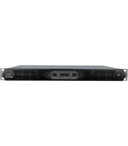 Kompakter (1U) und leichter Class-D-Verstärker zur Festinstallation, Lo-Z (2, 4, 8 Ohm), Mono-, Stereo- und Bridge-Modi, Universal-SMPS (100 - 250 V AC) mit PFC, Der DAP SI-4.450 ist ein kompakter und leichter 4-Kanal-Leistungsverstärker für Festinstallationen. In einem 1U-Rack liefert er 4x 450 W an 4 Ohm, ist in der Lage, 2-Ohm-Lasten anzusteuern und kann für noch mehr Leistung gebrückt werden. Er ist mit seiner ausgezeichneten Stabilität für niederohmige Anwendungen mit hoher Stromstärke ausgelegt.Er verfügt über einen Clip-Limiter und einen DC-Ausgangsschutz, um Schäden am Lautsprecher zu verhindern. Ein Überlastungs- und Kurzschlussschutz am Ausgang schützt den Verstärker vor Fehlern, ebenso wie ein Übertemperaturschutz und eine Leistungsdämpfung bei hohen Temperaturen.Die LEDs Signal, Clip, Fault und Power zeigen den Status des Verstärkers an. Der Ausgangspegel kann für jeden Kanal mit den Lautstärkereglern eingestellt werden. Die Verstärkung kann auf der Rückseite auf 0,775 V Eingangsspannung oder 32 dB Verstärkung eingestellt werden, und ein Modus-Schalter wählt die Modi Stereo, Mono und Bridge.Das universelle Schaltnetzteil verwendet aktive PFC- und Soft-Switching-Technologie, akzeptiert Eingangsspannungen von 100 - 250 V AC und ist für den Audioverstärker optimiert.Technische Daten: Stabiler 2-Ohm-Betrieb: Yes, Ausgabe pro Kanal an 8 Ohm bei 1 kHz: 300 W, Ausgabe pro Kanal an 4 Ohm bei 1 kHz: 450 W, Ausgabe pro Kanal an 2 Ohm bei 1 kHz: 675 W, Bridgeausgabe an 8 Ohm bei 1 kHz: 900 W, Bridgeausgabe an 4 Ohm bei 1 kHz: 1350 W, Ausgangskanäle: 4, Ausgabemodus: 4-channel / Bridge / Mono / Parallel / Stereo, Ausgangsanschluss: Speaker Connector 4 pole, Mono-Eingang Anschluss: 3-pin XLR, THD-Pegel: Signal-zu-Rauschabstand:> 100 dB, Flankensteilheit: 50 V/μs, Verstärkertechnologie: Class D, Dämpfungsfaktor: 1000:1, Frequenzgang Minimum: 20 Hz, Frequenzgang Maximum: 20000 Hz, Stromversorgung: 100-240 V AC 50/60 Hz, Stromverbrauch: 550 W, Höhe (mm): 45 mm, Breite (mm): 483 mm, Länge (mm): 296 mm, Rack-Einheiten: 1 U, Gewicht: 5.2 kg, Elektronischer Schutz: Clip limiter / DC voltage / Overheat / Overload / Under voltage ...