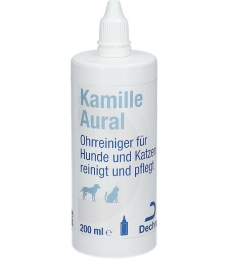 Kamillen-Ohrreiniger zur Reinigung und Pflege empfindlicher Gehörgänge von Hund und Katze Der Kamillen-Ohrreiniger ist speziell für Tiere nach dermatologischen Erkenntnissen konzipert. Die Anwendung ist durch milde reinigende und pflegende Substanzen auch bei empfindlichen Gehörgängen möglich. Der Kamillen-Ohrreiniger reinigt die Gehörgänge deshalb besonders schonend. Ohrenschmalz und Schmutz werden gründlich entfernt. Die Kamille lindert und sorgt für ein normales Ohrmilieu und angenehmen Geruch. Inhaltsstoffe: Aqua, Propylene Glycol, Disodium Laureth Sulfosuccinate, Matricaria Chamomilla, Lactic acid Anwendung: Flasche vor Gebrauch schütteln. Tropfspitze ohne Druck an die Ohröffnung legen und etwas Kamillen-Ohrreiniger in den Gehörgang füllen an der Ohröffnung austretende Flüssigkeit mit einem Tuch aufsaugen, bevor sich ihr Tier den Kopf schüttelt. Sofern tierärztlich nicht anders empfohlen, Kamillen-Ohrreiniger bei stark verschmutzten Gehörgängen 1- bis 2-mal täglich, zur Vorbeugung und Pflege 1- bis 2-mal wöchentlich anwenden. ...