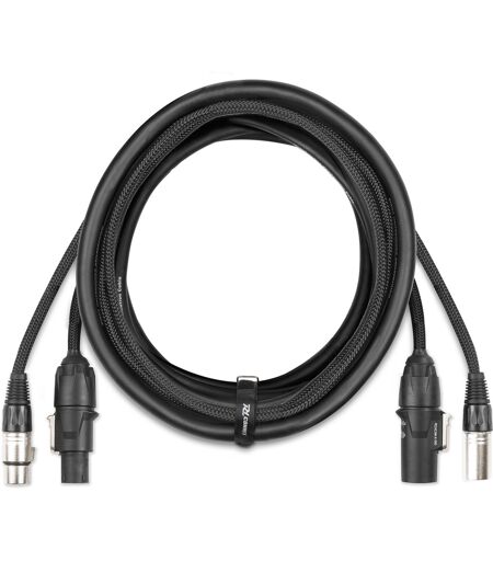 Strom und Signal in einem Kabel vereint. Mit Powerconnector TR- und XLR-Steckern an beiden Enden erleichtern diese Kabel die Verkabelung professioneller LED-Effekte, Moving Heads und Wallwasher.Kombikabel mit Stromversorgung und 5-poligem Signalanschluss (DMX) in einem Kabel, Perfekt für die einfache Verkettung von Lichteffekten, XLR-Buchse/Powerconnector TR A – XLR-Stecker/Powerconnector TR B, 3x 1,50 mm² Stromkabel (max. 16 A), Länge = 5 m, Technische Daten: Produktfarbe: Schwarz, IP-Schutzart: IP65, Wählen Sie beide Stecker aus: Stromanschluss Tr IP65 (A), Stromanschluss Tr IP65 (B), 5-poliger XLR IP65 (M), 5-poliger XLR IP65 (F), Kabellänge: 5 m, Stromkabel: 3 x 1,5 mm², Leiter: 8 x 0,2 mm, Außendurchmesser: 10,8 mm, Abschirmung: 64 x 0,08 mm, Impedanz: 120 Ohm, Gewicht (kg): 0,8000 ...
