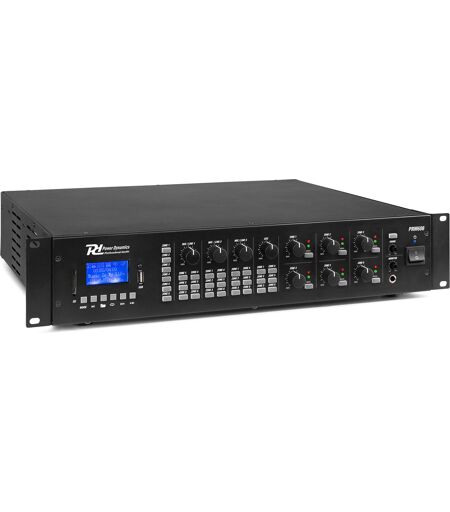 Der PRM606 ist ein rackmontierbarer Verstärker, der entweder als 100-V-Verstärker oder als Standard-Niederimpedanzverstärker verwendet werden kann. Dieser 6-Zonen-Verstärker ist für Multiroom-Systeme konzipiert, die unterschiedliche Audioquellen benötigen. Er ist mit einem BT-Empfänger und USB/SD-Anschlüssen für die MP3-Wiedergabe ausgestattet und verfügt über ein helles LCD-Display mit ID3-Tag. Der PRM606 ist mit schaltbaren XLR-Eingängen mit 24 V Phantomspeisung ausgestattet, speziell für Durchsagen und Kondensatormikrofone. Speziell entwickelt für Anwendungen wie Durchsagen, Durchsagen, Interkommunikation, Hintergrundmusik, Rundfunk in Industrieanlagen usw.100-V-Matrixverstärker mit 6 unabhängigen Ausgangszonen, 6x 60W Klasse D Leistungsteil, MP3-Player mit USB/SD-Steckplatz, Verwendung der drahtlosen BT-Technologie für Audio-Streaming, LCD-Bedienfeld mit ID3-Tag, 3x Mic/Line-Eingänge Combi 6,3mm Jack/XLR, 1x RCA Line-Eingang und 1x RCA Line-Ausgang, XLR-Mikrofoneingänge mit schaltbarer Phantomspeisung (24V) und VOX-Priorität, 100V oder 4/8 Ohm Lautsprecherausgang, Zonenausgänge: 6x Line (RCA Mono), Zonenausgänge: 6x Lautsprecheranschluss (100V / 4Ohm / 8Ohm / Com), Bass- und Höhenregler, Glockenspiel mit Lautstärkeregelung, 19" Rack montierbar (2U), Notbetrieb über 24V-Batterie (nicht mitgeliefert), Schutzvorrichtungen: Überhitzung, Kurzschluss und Einschaltverzögerung, Notfall-Stummschalteingang, Inklusive Fernbedienung, Wiedergabemöglichkeiten: BT-Streaming, SD, USB, Ausgangsleistung: RMS: 360W, Impedanz: 100V, 4 Ohm, 8 Ohm, Frequenzgang: 100Hz - 24.000Hz, Stromversorgung: 220-240VAC 50Hz, Leistungsaufnahme: 2A, Abmessungen (L x B x H): 390 x 483 x 95mm (ohne Füße 88mm), Gewicht: 11.8500, Zubehör: Halterung, Netzkabel, Fernbedienung ...
