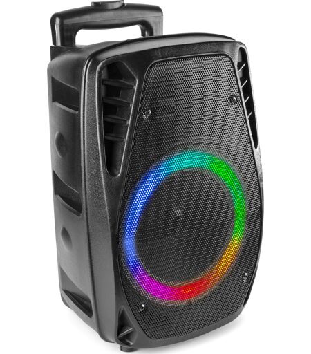 Mit dem FT8LED-MK2 Portable Sound System kann die Party beginnen. Mit diesem Unterhaltungssystem können Sie alle Ihre Lieblingssongs abspielen und mit dem mitgelieferten Mikrofon singen, wo immer Sie sind. Der Lautsprecher ist mit einem Trolley-System ausgestattet und verfügt über einen 8"-Woofer, der für optimalen Sound sorgt. Verwenden Sie die drahtlose BT-Verbindung, um ihn mit Ihrem Smartphone zu koppeln, verwenden Sie einen MicroSD-Karten-/USB-Treiber oder schließen Sie ein 3,5-mm-Audiokabel an Ihr Gerät an, wenn keine drahtlose Verbindung verfügbar ist. Der eingebaute, farblich wechselnde LED-Ring hinter dem Grill sorgt für einen tollen Effekt auf jeder Party. Dieses tragbare Lautsprechersystem hat einen eingebauten Akku und ist einfach zu bedienen.Kompakter, tragbarer Party-Lautsprecher mit integriertem, wiederaufladbarem Akku, Trolleysystem mit einziehbarem Griff und Rädern, Farbwechselndes LED-Ringlicht, Verwendung der BT 5.0 Wireless-Technologie für Audio-Streaming, Integrierter USB/MicroSD-Karten-MP3-Player, Mikrofoneingang mit Echoeffekt, Anschluss an andere Geräte über Aux-Eingang, Batteriebetrieben (Lithium-Ionen-Akku), Inklusive kabelgebundenem Mikrofon und Fernbedienung, Wiedergabemöglichkeiten: BT-Streaming, MicroSD, USB, Ausgangsleistung: Max: 300W, Akku: 3,7V - 1,5Ah, Frequenzgang: 50Hz - 18.000Hz, Durchmesser Hochtöner: 1", Durchmesser Tieftöner: 8", Magnet-Typ: Ferrit, Eingangsanschlüsse: 3,5 mm Klinke, 6,3 mm Klinke, MicroSD, USB, Mitgelieferte Merkmale: Masthalterung für Lautsprecher, Stromversorgung: 5V über USB, Abmessungen (L x B x H): 300 x 250 x 445 mm, Gewicht: 4.3000 ...