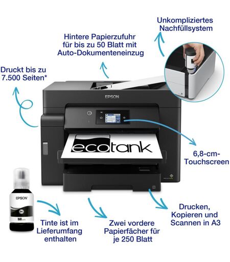 3 Jahre erweiterbare Garantie gratis nach Registrierung* Epson EcoTank ET-M16600 A3-Tintentank-Multifunktionsdrucker s/w C11CJ41401