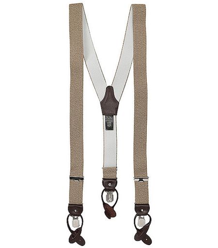 Stylishe Hosenträger mit Leder Details Länge ca. 120cm - passend für alle Größen Breite: 35mm Farbbezeichnung: Beige Melange Material: 75% Polyester, 15% Elastodien, 10% Leder ...
