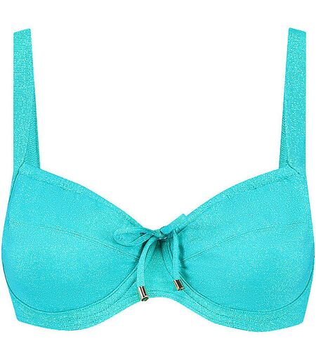 Bügel Nicht Vorgeformt Verstellbare Schultergurte Geeignet für große Cup größe Aqua -blau glänzender Strukturstoff mit Glitzer Schleifen Detail Material: 75% Polyamid, 16% Elasthan, 9% Lurex Farbbezeichnung: Sea Sparkle ...