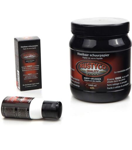 Nicht umsonst wird das Rostentfernergel von Rustyco als „flüssiges Schleifpapier“ bezeichnet. Dieses wirksame Produkt lässt sich leicht mit einem Pinsel auf Farbe, Glas und Gummi auftragen. Der Rost löst sich nach einiger Zeit von selbst ab. Dann kann man die Oberfläche reinigen und bearbeiten. Rustyco-Rostentferner ist sparsam im Gebrauch und sehr gut geeignet für Materialien, die nicht in Wasser getaucht werden sollen. Das Gel wird in einem 1-Liter-Behälter geliefert. ...