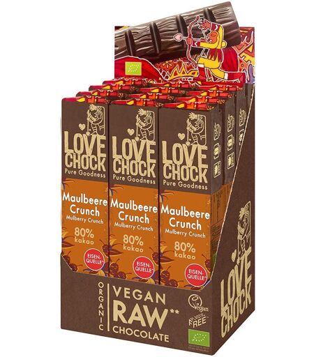 Lovechock Bio rohe Schokolade Bars, Maulbeere-Vanille 12x40 g