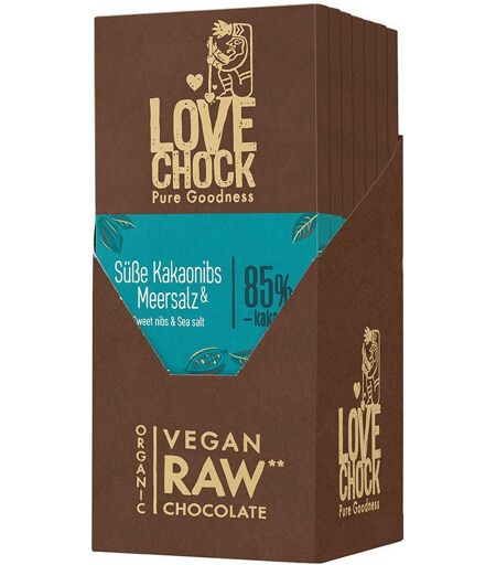 Lovechock Bio rohe Schokolade, Süße Kakaonibs-Meersalz 8x70 g Schokolade