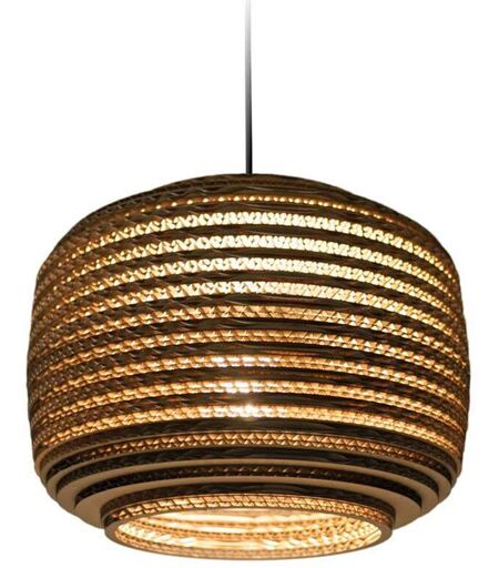 Die elegante und einzigartige graypants Ausi Pendelleuchte aus recycelter Wellpappe erinnert mit ihren Proportionen sofort an traditionelle japanische Laternen. Handgefertigt aus recyceltem Karton, bietet die charakteristische Scraplight Serie von graypants warme, intime und funktionale Beleuchtung für jede private und gewerbliche Räumlichkeit. Robust und dennoch elegant, die graypants Ausi Pendelleuchte besteht aus einer extrem präzisen lasergeschnittenen Kartonkonstruktion, die von Hand mit ungiftigem Klebemittel montiert und zugleich mit einem umweltfreundlichen, feuerhemmenden Mittel behandelt ist. Die exklusive graypants Ausi Pendelleuchte strahlt teils direktes Licht nach unten und teils diffuses Licht durch die Löcher der Wellpappe und zaubert somit ein gemütliches und einzigartiges Ambiente. Die Ausi Pendelleuchte ist in verschiedenen Größen und entweder in weiß oder natur erhält... ...