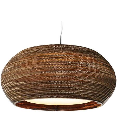Die zeitlos elegante graypants Ohio Pendelleuchte ist Teil der charakteristischen Frame Scraplight Serie von graypants. Sie besticht nicht nur durch die spielerische Kombination verschiedener Materialien und einer eleganten, abgerundeten Form, sondern auch durch eine einzigartige Lichtinszenierung und einer faszinierenden Oberflächenstruktur. Robust und dennoch elegant, die graypants Ohio Pendelleuchte besteht aus einem stabilen Stahlrahmen, gehärtetem satiniertem Glas und recyceltem Karton. Der einzigartige Leuchtschirm wird aus extrem präzisen lasergeschnittenen Kartonscheiben hergestellt, die von Hand mit ungiftigem Klebemittel Schicht für Schicht zusammengefügt und anschließend mit einem umweltfreundlichen, feuerhemmenden Mittel behandelt wird. Durch das innovative, handgefertigte Design und unkonventionelle Material, ist jede Leuchte ein absolutes Unikat und bietet eine warme, intim... ...