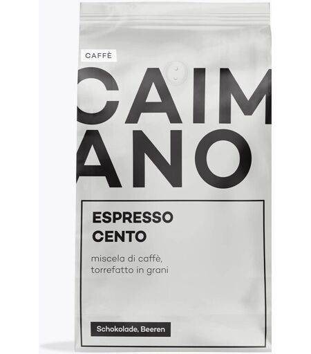 eutschland unterstreicht den Qualitätsanspruch dieses Röstkaffees. Caffè Caimano Espresso Cento ist als ganze Bohne oder in verschiedenen Mahlgraden erhältlich und eignet sich für alle, die einen charaktervollen Espresso mit feiner Balance aus Frucht und Schokolade suchen. ...