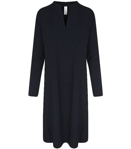 Kleid aus elastischem Technojersey Leichter Stehkragen Langarm Gerade, legere Schnittführung in dezenter A-Linie Eingrifftaschen Offene Kanten Farbe: Blue Black Gesamtlänge ca. 95 cm Material: 100% Polyester ...