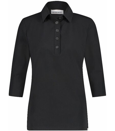 Damen Bluse aus pflegeleichtem Stretch-Material Kragen mit kurzer Knopfleiste 3/4-Ärmel Gerade geschnitten Unifarben Farbe: schwarz Optimale Reisekleidung Material: 72% Polyamid, 28% Elasthan ...
