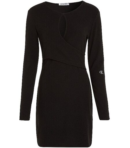 Elegantes Damen Kleid U-Boot-Ausschnitt mit Cut-Out Langarm Logo-Detail am linken Ärmel Körpernahe Passform Unifarben Farbbezeichnung: Black Material: 76% Polyester, 20% recycelter Polyester, 4% Elasthan ...