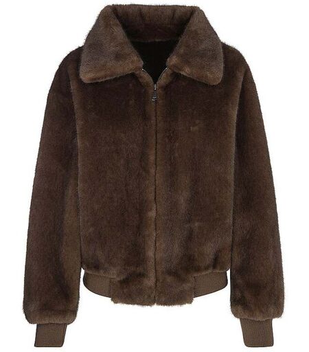 Damen Jacke in Felloptik Kragen Langarm Schließt mit Reißverschluss Elastische Bündchen an Ärmel und Saum Seitliche Eingriffstaschen Unifarben Oversized geschnitten Farbbezeichnung: Choco Material: 100% Polyester ...