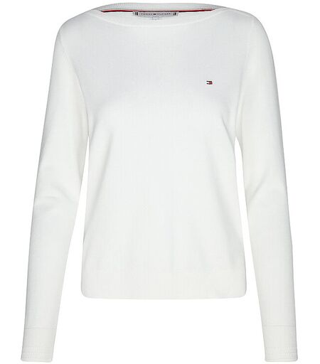 Dieses stilvolle Sweatshirt mit U-Boot-Ausschnitt ist dank Pima-Baumwollanteil ausgesprochen soft und hebt deinen Freizeitlook auf ein neues Level. Details: Damen Pullover aus Jersey mit hohem Pima-Baumwollanteil U-Boot-Ausschnitt Kragen, Bündchen und Saum aus Rippstrick Ausschnitt mit Tommy-Tape an Innenseite Tommy Hilfiger-Branding Tommy Hilfiger Flag-Stickerei auf Brust Unifarben Reguläre Passform Farbbezeichnung: White Material: 67% Baumwolle, 33% Polyamid ...