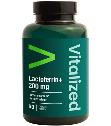 Anwendungsgebiet von Vitalized Lactoferrin+ 200 mg Kapseln Lactoferrin+ 200 mg – Ihre natürliche Unterstützung für das Immunsystem! Ihr Plus für ein starkes ImmunsystemEin gut funktionierendes Immunsystem ist essenziell für unser Wohlbefinden. Vitalized Lactoferrin+ 200 mg Kapseln vereint hochwertiges europäisches Lactoferrin mit natürlichem Vitamin C, um Ihr Immunsystem optimal zu unterstützen. Mit höchster Reinheit und wissenschaftlich fundierter Dosierung bietet dieses Produkt eine bewährte Lösung für alle, die ihre Abwehrkräfte auf natürliche Weise stärken möchten.Fünf herausragende Vorteile von Lactoferrin+ 200 mgStärkung der Immungesundheit*Aufrechterhaltung eines gesunden Eisenspiegels **Hervorragende Reinheit und QualitätHochwertiges europäisches LactoferrinNatürliches Vitamin C aus pflanzlicher QuelleLactoferrin+ 200 mg ist eine erstklassige Nahrungsergänzung, die vegetarisch, gentechnikfrei und glutenfrei ist.Lactoferrin ist ein bewährtes Immunprotein, das aus Milch gewonnen wird. Vitalized verwendet Biotis®, eine der weltweit führenden Quellen für Lactoferrin mit optimaler Funktionalität.Ergänzt wird das Produkt durch natürliches Vitamin C, das ausschließlich aus Pflanzen gewonnen wird. Diese sorgfältig abgestimmte Kombination macht Lactoferrin+ 200 mg zu einer idealen Wahl für alle, die ihr Immunsystem auf natürliche Weise unterstützen möchten.* Lactoferrin – Ein essenzielles ImmunproteinLactoferrin ist ein körpereigenes Multifunktionsprotein, das in zahlreichen Humanstudien erforscht wurde. Es ist ein natürlicher Bestandteil des Immunsystems und in verschiedenen Körperflüssigkeiten wie Milch, Speichel, Tränen und Schleimhäuten enthalten. Es interagiert sowohl mit körpereigenen Strukturen als auch mit fremden Organismen und trägt zur Immunabwehr bei. Unterstützung des EisenstoffwechselsEisen ist ein essentielles Mineral, das für zahlreiche körperliche Prozesse von Bedeutung ist. La ...
