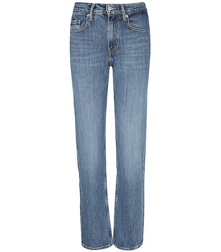Damen Jeans aus Baumwoll-Stretch Mittlere Leibhöhe Schließt mit Knopf- und Reißverschluss 5-Pocket-Style Logo-Patch am Bund hinten Schmaler, gerader Beinverlauf Dezente Waschung Farbbezeichnung: Blue Material: 99% Baumwolle, 1% Elasthan ...