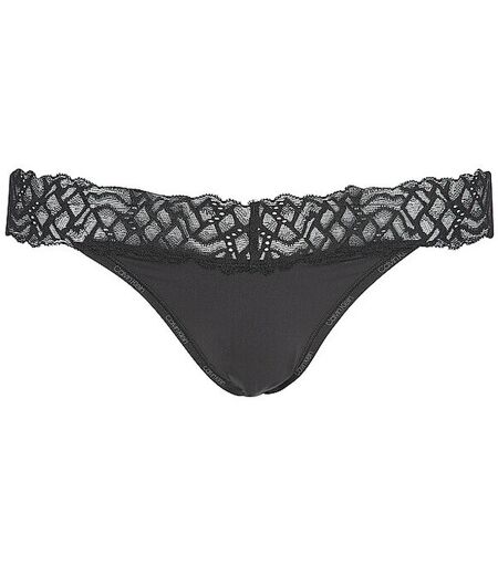 Damen Slip aus angenehmem Stretch-Material Spitzenbesatz Elastisches Gummiband mit Logo-Print Unifarben Farbbezeichnung: Black Material: 80% Nylon, 20% Elasthan ...