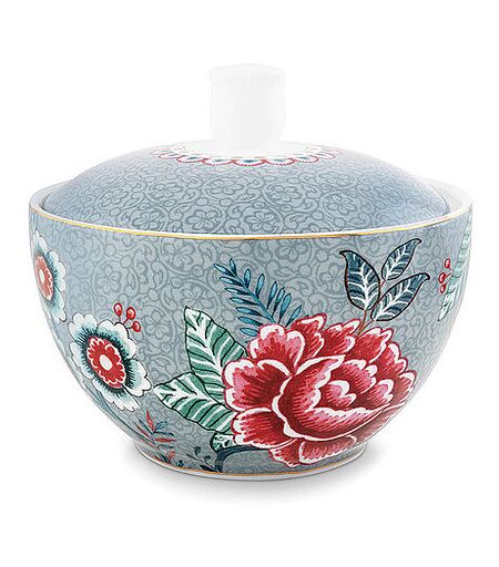 PIP STUDIO Zuckerdose klein 300ml FLOWER FESTIVAL Light Blue hellblau B