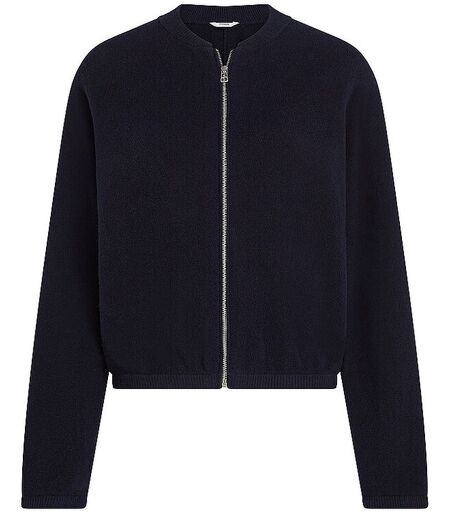 Damen Strickjacke aus Baumwoll-Mischung Stehkragen Schließt mit Reißverschluss Langarm Elastischer Bund Gerade Passform Unifarben Farbbezeichnung: Navy Material: 58% Baumwolle, 38% Polyamid, 4% Elasthan ...
